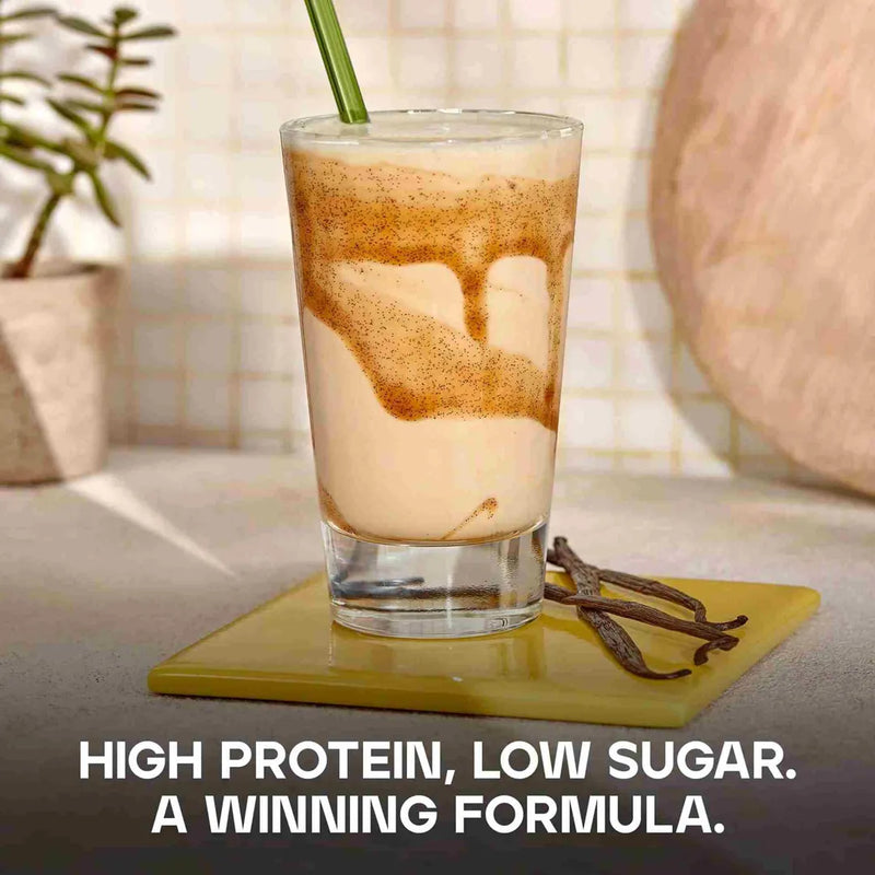 Protein Blend [Soy Protein Isolate, Glutamine Peptides (Wheat), Whey Protein Concentrate (Milk), Milk Protein Concentrate], Maltodextrin, Flavouring, Sweetener (Sucralose), Thickener (Xanthan Gum, Guar Gum). |
